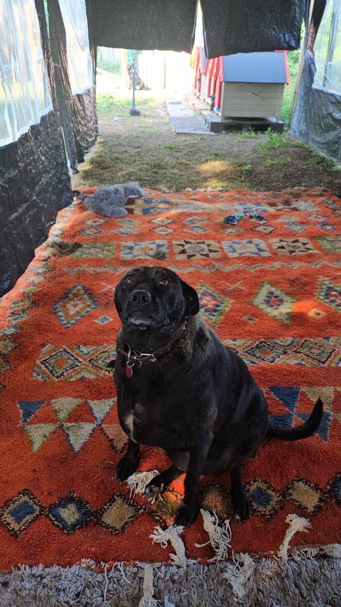 Blacky ist eher ein gemütlicher Typ. Er isst und schläft gern. Er spielt eher wenig und schmust dafür lieber. Wer einen Familienhund sucht, der nicht so viel spazieren geht, findet in ihm den richtigen.